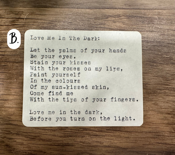 Choose from 5 different love poems and 3 classic colours to find your perfect match!